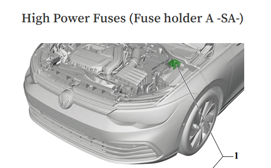 Complete pinout of the relay and fuse box for Volkswagen Golf 8 vehicles